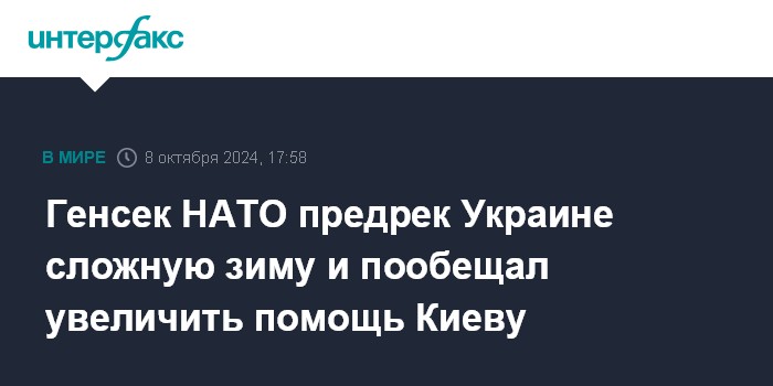 Москва. 8 октября. INTERFAX.RU - Генеральный секретарь НАТО Марк Рютте предсказал сложную предстоящую зиму Украине и заверил, что альянс увеличит помощь Киеву.