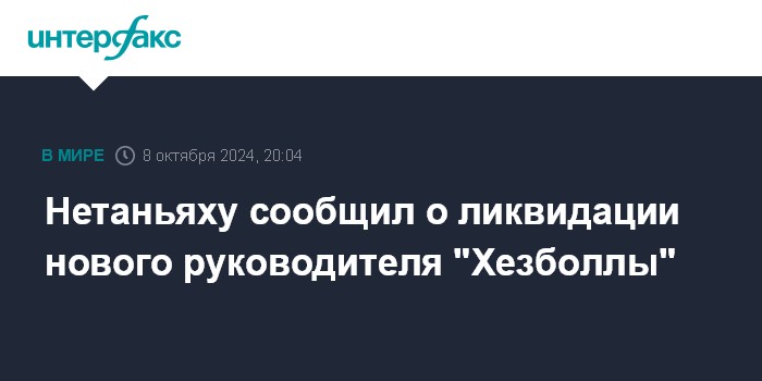 Нетаньяху сообщил о ликвидации нового руководителя "Хезболлы"