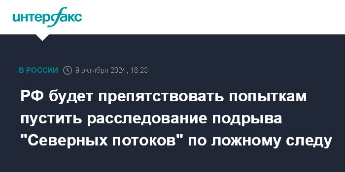 РФ будет препятствовать попыткам пустить расследование подрыва "Северных потоков" по ложному следу