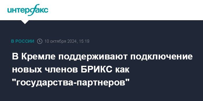 В Кремле поддерживают подключение новых членов БРИКС как "государства-партнеров"