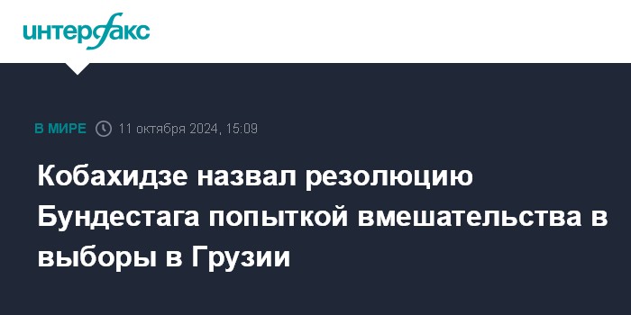 Москва. 11 октября. INTERFAX.RU - Премьер-министр Грузии Ираклий Кобахидзе назвал попыткой вмешательства в парламентские выборы резолюцию Бундестага "За европейское будущее Грузии", принятую 10 октября.