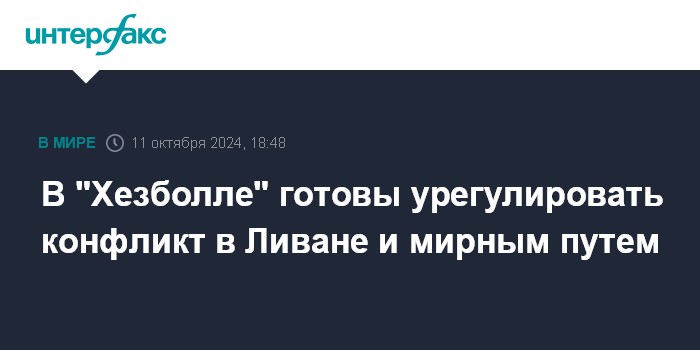 Москва. 11 октября. INTERFAX.RU - Движение "Хезболла" может рассмотреть не только вооруженное сопротивление, но и иные варианты действий ради прекращения ударов Израиля, заявил телеканалу LBCI глава пресс-службы движения Мухаммад Афиф.