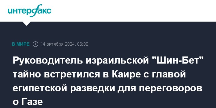 Руководитель израильской "Шин-Бет" тайно встретился в Каире с главой египетской разведки для переговоров о Газе