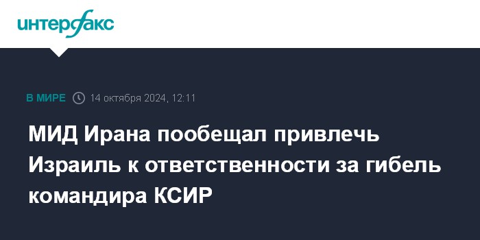 МИД Ирана пообещал привлечь Израиль к ответственности за гибель командира КСИР