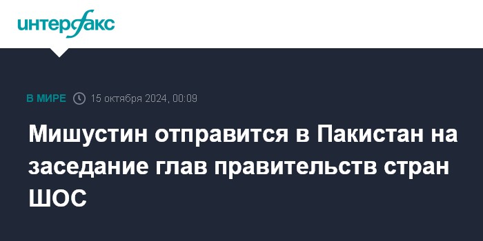 Москва. 15 октября. INTERFAX.RU - Премьер-министр РФ Михаил Мишустин 15-16 октября посетит Исламскую Республику Пакистан, город Исламабад, и примет участие в заседании совета глав правительств государств-членов Шанхайской организации сотрудничества (ШОС), сообщает пресс-служба кабинета министров РФ.
