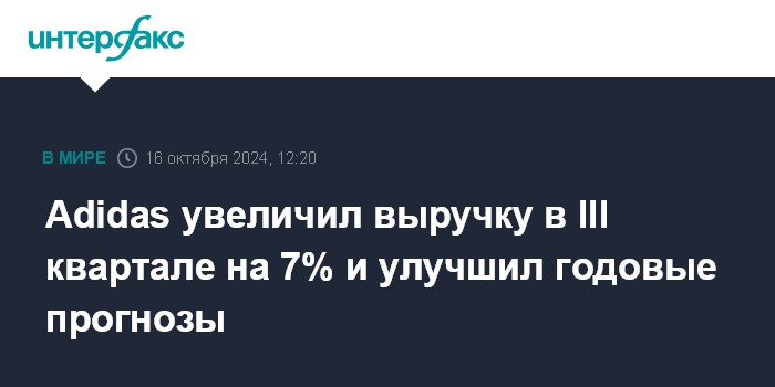 Adidas улучшил прогнозы выручки и операционной прибыли на текущий год благодаря более сильным, чем ожидалось, результатам третьего квартала.
