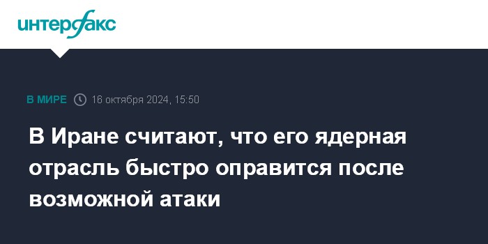 В Иране считают, что его ядерная отрасль быстро оправится после возможной атаки