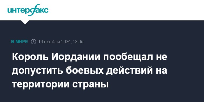 Москва. 16 октября. INTERFAX.RU - Король Иордании Абдалла II на встрече с главой МИД Ирана Аббасом Аракчи призвал к деэскалации на Ближнем Востоке и заявил, что не позволит превратить Иорданию в зону военного противостояния, сообщает агентство Petra.