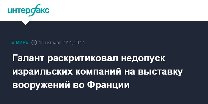 Москва. 16 октября. INTERFAX.RU - Глава Минобороны Израиля Йоав Галант раскритиковал недопуск израильских компаний на выставку морских вооружений во Франции.