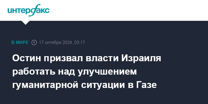 Остин призвал власти Израиля работать над улучшением гуманитарной ситуации в Газе