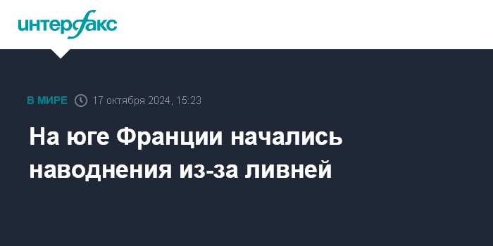 Москва. 17 октября. INTERFAX.RU - На юге Франции ливни вызвали наводнения, местами потребовалась эвакуация людей, произошли сбои в работе транспорта, сообщает BFMTV.