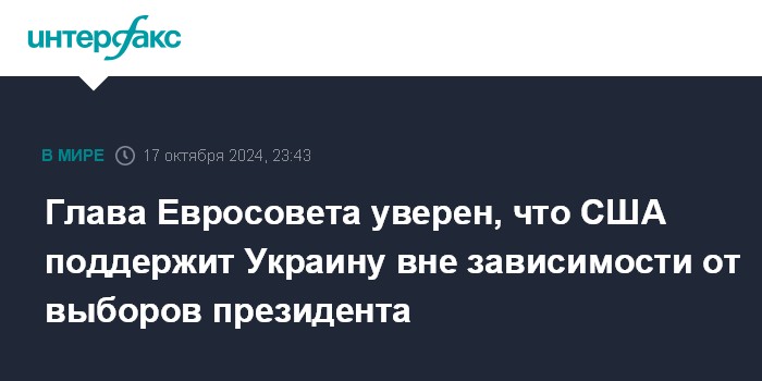 "Я уверен, что каким бы ни был результат выборов в США, трансатлантические связи будут очень сильными и мы сможем защищать наши общие демократические ценности и принципы", - сказал Мишель на пресс-конференции, объясняя, почему, на его взгляд, Вашингтон будет и далее помогать Киеву.