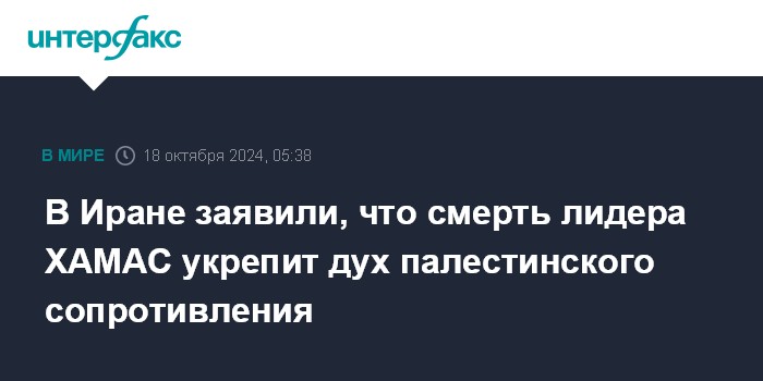 Москва. 18 октября. INTERFAX.RU - Представительство Ирана при ООН заявило, что обстоятельства гибели лидера ХАМАС Яхьи Синвара укрепят "дух сопротивления".