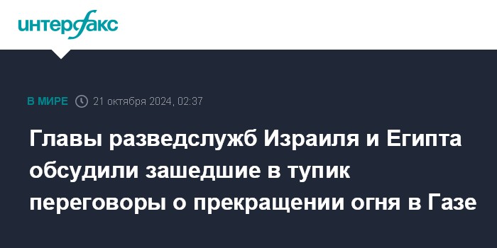 Главы разведслужб Израиля и Египта обсудили зашедшие в тупик переговоры о прекращении огня в Газе
