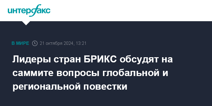 Лидеры стран БРИКС обсудят на саммите вопросы глобальной и региональной повестки