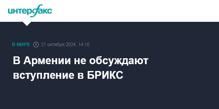 Москва. 21 октября. INTERFAX.RU - Армения не планирует становиться членом БРИКС, заявил вице-премьер республики Мгер Григорян.