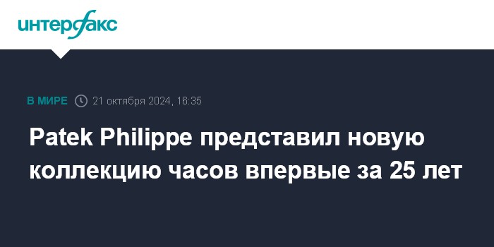 Москва. 21 октября. INTERFAX.RU - Швейцарский производитель наручных часов Patek Philippe представил новую коллекцию впервые за четверть века, сообщает CNBC.