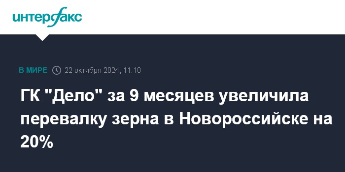 ГК "Дело" за 9 месяцев увеличила перевалку зерна в Новороссийске на 20%