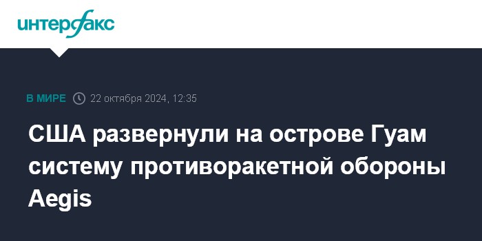 Москва. 22 октября. INTERFAX.RU - США разместили на острове Гуам в западной части Тихого океана элементы наземной системы противоракетной обороны Aegis, сообщило The War Zone, ссылаясь на данные Пентагона.