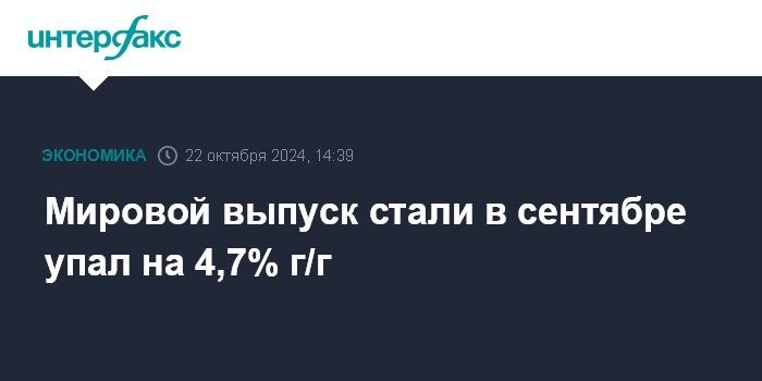 Мировой выпуск стали в сентябре упал на 4,7% г/г
