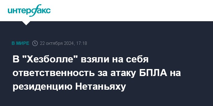 "Исламское сопротивление заявляет о полной, всеобъемлющей и исключительной ответственности за операцию в Кесарии, целью которой был дом военного преступника и лидера Нетаньяху", - приводит EFE выдержку из заявления "Хезболлы".