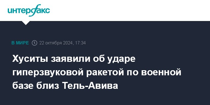 Хуситы заявили об ударе гиперзвуковой ракетой по военной базе близ Тель-Авива