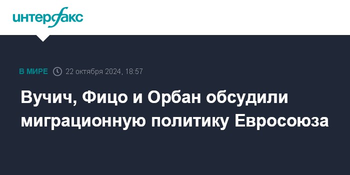 В совместном заявлении, принятом по итогам встречи, Орбан, Вучич и Фицо подчеркнули, что нелегальная миграция "является серьезной проблемой, подпитываемой геополитической нестабильностью, растущими конфликтами и социальным неравенством в непосредственной близости от Европы".