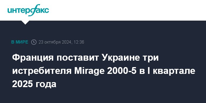 В начале октября глава Минобороны Франции Себастьян Лекорню сообщил, что поставка украинской стороне французских многоцелевых истребителей Mirage 2000 планируется в следующем году, но не уточнял, о каком количестве идет речь.