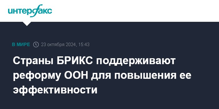 Москва. 23 октября. INTERFAX.RU - Лидеры стран БРИКС высказались в поддержку всеобъемлющей реформы ООН и ее Совета Безопасности, поддержали стремление стран Африки, Азии и Латинской Америки играть более значимую роль в ООН.
