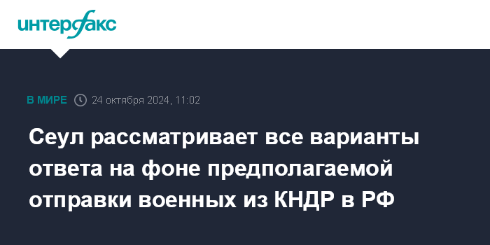 Сеул рассматривает все варианты ответа на фоне предполагаемой отправки военных из КНДР в РФ