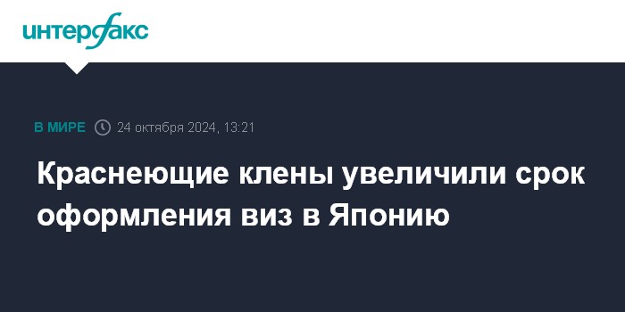 Москва. 24 октября. INTERFAX.RU - Этой осенью срок оформления виз в Японию вырос более чем вдвое из-за повышенного спроса на поездки в страну в период красных кленов, предупредила пресс-служба Российского союза туриндустрии.