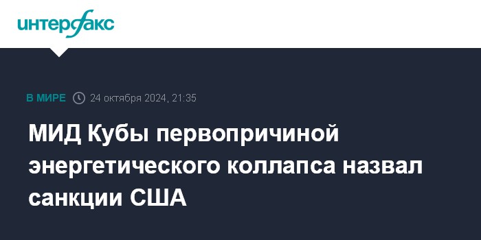 Москва. 24 октября. INTERFAX.RU - Власти Кубы связывают недавний коллапс энергетической системы страны с экономической блокадой со стороны США, передает EFE.