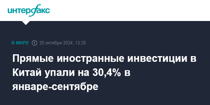 Прямые иностранные инвестиции в Китай упали на 30,4% в январе-сентябре