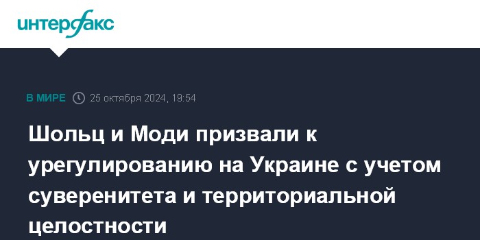 Шольц и Моди призвали к урегулированию на Украине с учетом суверенитета и территориальной целостности