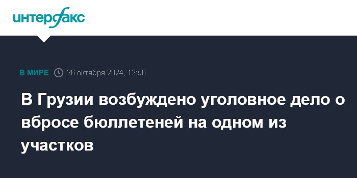 Москва. 26 октября. INTERFAX.RU - МВД Грузии возбудило уголовное дело по факту вброса бюллетеней на одном из участков в городе Марнеули, сообщил председатель ЦИК Грузии Георгий Каландаришвили.