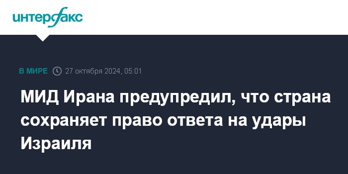 МИД Ирана предупредил, что страна сохраняет право ответа на удары Израиля