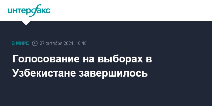 Москва. 27 октября. INTERFAX.RU - В Узбекистане избирательные участки на выборах депутатов Законодательной (нижней) палаты парламента закрылись на территории страны в 20:00 (18:00 по московскому времени) по местному времени, сообщила пресс-служба ЦИК республики.