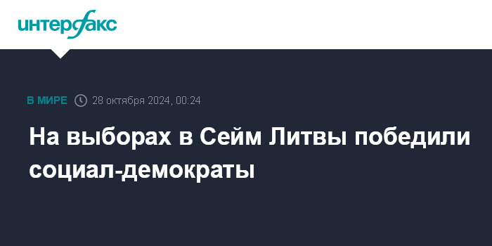 Москва. 28 октября. INTERFAX.RU - Литовская социал-демократическая партия (ЛСДП) победила на выборах в Сейм в воскресенье, у нее будет самая многочисленная фракция в парламенте.