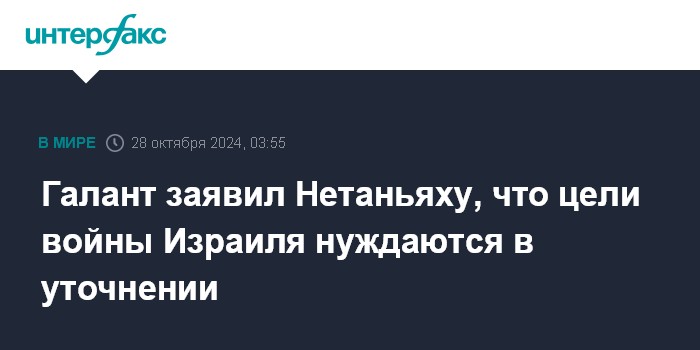 Галант заявил Нетаньяху, что цели войны Израиля нуждаются в уточнении