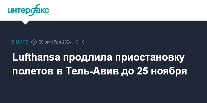 "Авиакомпании группы Lufthansa – Austrian Airlines, Brussels Airlines, Lufthansa и SWISS – решили продлить приостановку полетов в Тель-Авив до 25 ноября 2024 года включительно", - говорится в сообщении группы.