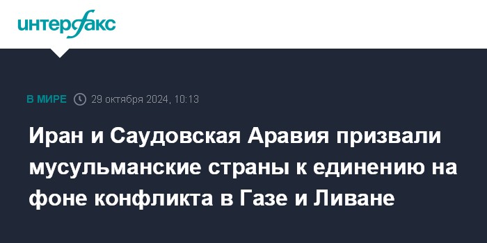 Иран и Саудовская Аравия призвали мусульманские страны к единению на фоне конфликта в Газе и Ливане