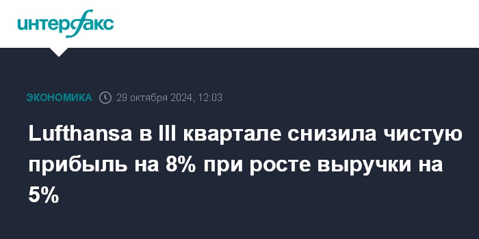 Lufthansa в III квартале снизила чистую прибыль на 8% при росте выручки на 5%