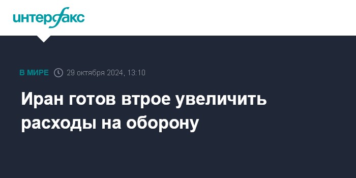 Москва. 29 октября. INTERFAX.RU - Администрация иранского президента Масуда Пезешкиана намерена утроить расходы страны на оборону, заявила представитель канцелярии главы государства Фатеме Мохаджерани.
