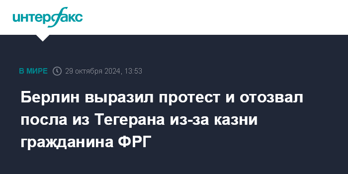 Берлин выразил протест и отозвал посла из Тегерана из-за казни гражданина ФРГ