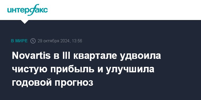 Novartis в III квартале удвоила чистую прибыль и улучшила годовой прогноз