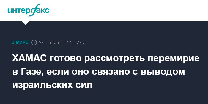 ХАМАС готово рассмотреть перемирие в Газе, если оно связано с выводом израильских сил