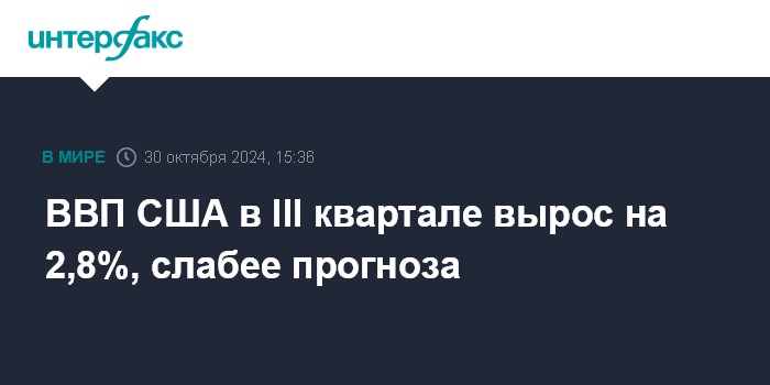 ВВП США в III квартале вырос на 2,8%, слабее прогноза