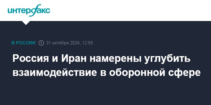 Россия и Иран намерены углубить взаимодействие в оборонной сфере