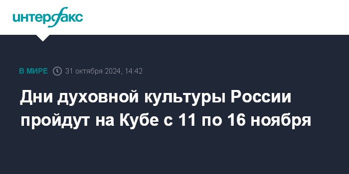 Дни духовной культуры России пройдут на Кубе с 11 по 16 ноября