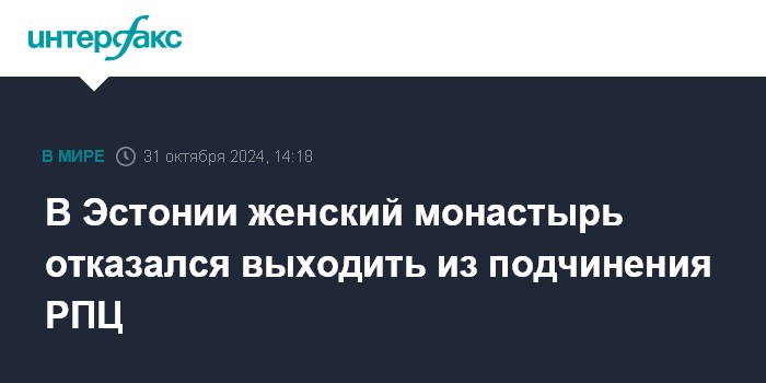 Москва. 31 октября. INTERFAX.RU - Успенский ставропигиальный женский монастырь в Эстонии отказался выходить из подчинения Московскому патриархату по юридическим причинам. Письмо настоятельницы Пюхтицкого монастыря игуменьи Филареты главе МВД Эстонии Лаури Ляэнеметсу опубликовано на сайте обители.